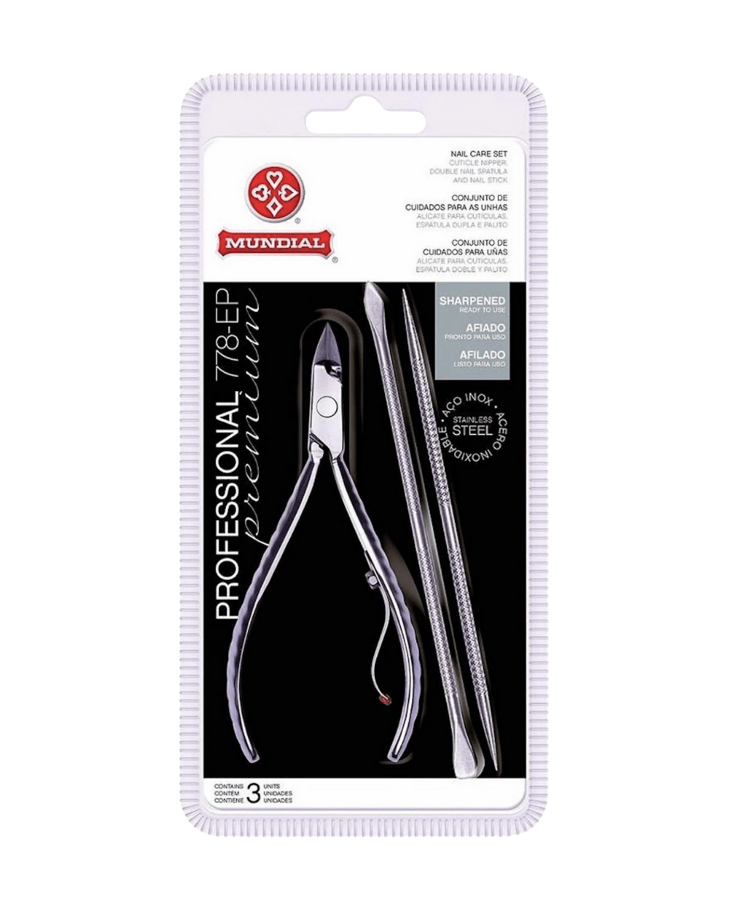 O modelo Mundial 778-EP conta com o alicate 722-PR, referência para as manicures, uma espátula e um palito inox exclusivos! O modelo permite maior desempenho, vida útil e reafiações, com seu cabo anatômico e texturizado que se ajusta à mão com mais conforto. A linha Professional Premium da Mundial traz alicates de excelente qualidade, pensados e desenhados exclusivamente para o melhor desempenho possível.