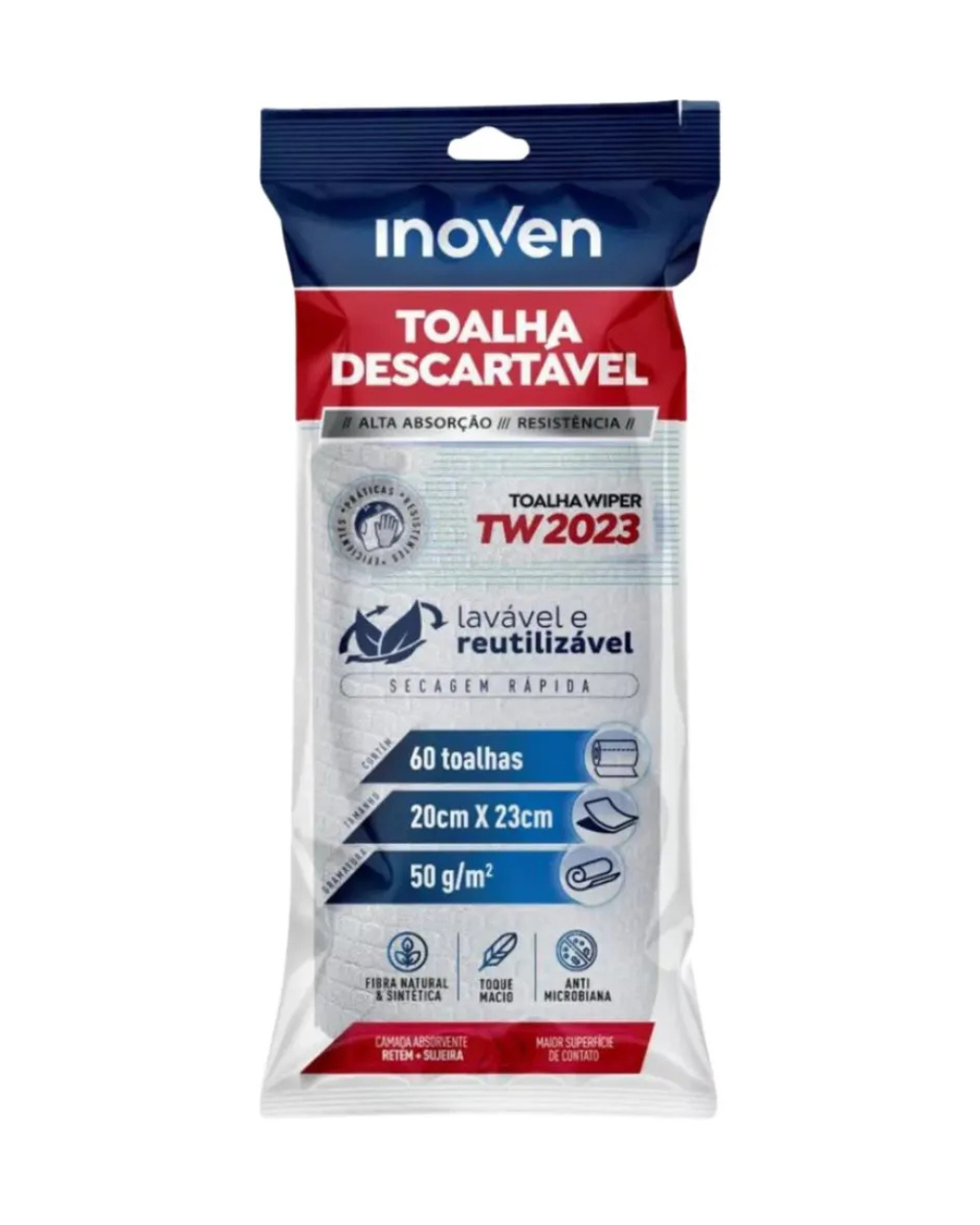 Toalha descartável Wiper TW2023 com 60 unidades, alta absorção, limpezas geral e pesada. 20cm X 23cm